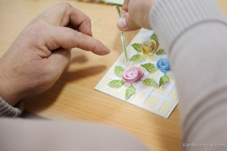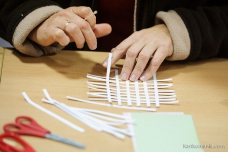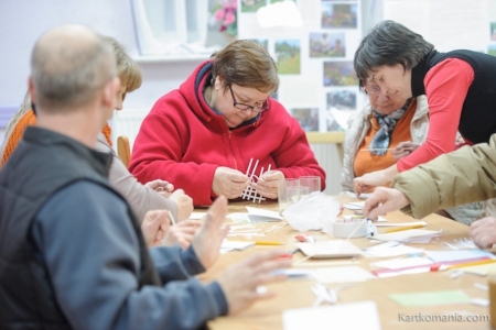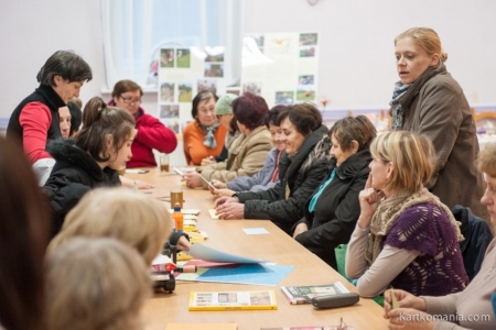 Zajęcia cieszyły się zaskakująco dużym zainteresowaniem, a ta z pozoru trudna i „dziwnie”, bo obco brzmiąca technika, dzięki cierpliwości i zaangażowaniu instruktorki i uczestników, zdobyła prędko nowych entuzjastów. W efekcie blisko pięciogodzinnych zajęć każdy uczestnik z prostych materiałów – tj. kolorowe kartoniki, tasiemki, guziki, stworzyło co najmniej 2-3 karteczki własnego pomysłu.