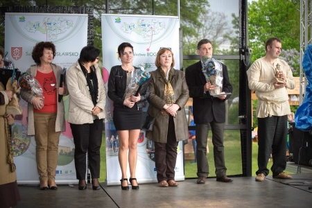Zanim podsumowany został konkurs i wręczono dyplomy i nagrody laureatom IV edycji, Inga Demianiuk –Ozga, Marta Kamińska i Piotr Kryszczak z zarządu Stowarzyszenia „Partnerstwo dla Doliny Baryczy” podziękowali włodarzom gmin i powiatów Doliny Baryczy za wsparcie udzielone sołectwom oraz Stowarzyszeniu w aktywizowaniu mieszkańców obszarów wiejskich. Specjalne podziękowania za wkład i zaangażowanie w pozytywne zmiany dokonujące się w nadbaryckich wioskach z rąk wójta Miecznikowskiego odebrała prezes Ozga. Wójt złożył również podziękowania i gratulacje za ciężką społeczną pracę sołtys Dziadkowa Anieli Błaszczyńskiej oraz członkowi rady sołeckiej Marcinowi Mrukowi, którzy następnie podziękowali swoim darczyńcom i partnerom – m.in. Nadleśnictwu Milicz, Kołu Łowieckiemu „Jeleń”, przedsiębiorcom pp. Chilińskim oraz rzeźbiarzowi p. Izydorczykowi z żoną z Dziadkowa.