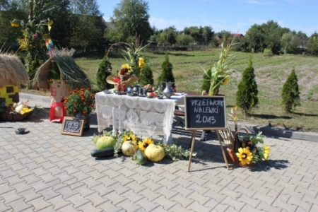 Przy stoiskach przedstawiających pracę ludzi na roli można było zobaczyć, w jaki sposób dawniej na wsi wytwarzano żywność. Młodzież przedstawiła młócenie zboża cepem, mielenie zboża żarnami, a także wypiekanie chleba, wirowanie mleka, wyrabianie masła i sera. Smakosze mogli skosztować swojskich wyrobów. Ponadto uczestnicy dożynek podziwiali wystawę dawnych narzędzi rolniczych oraz prace miejscowych rękodzielników, m.in. szydełka i decoupage.