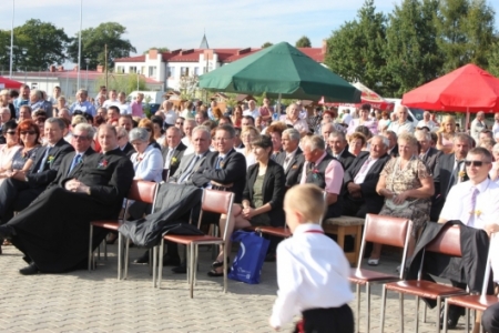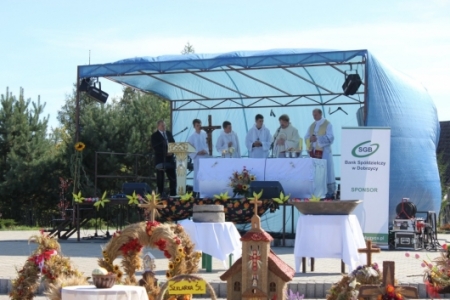 Uroczystość dożynkowa rozpoczęła się mszą świętą polową w Parku Rekreacyjno – Sportowym, która została odprawiona przez księdza Zdzisława Naglera i księdza Krzysztofa Guziałka.