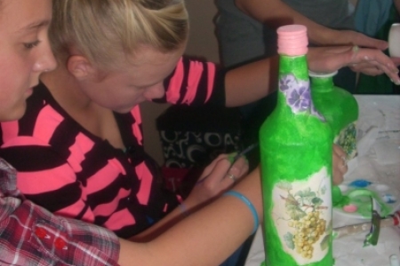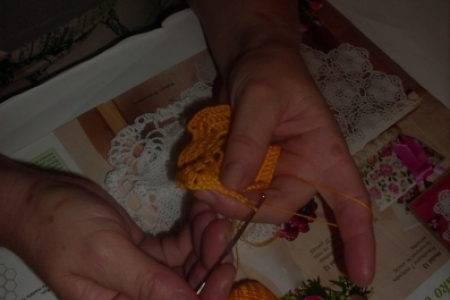W Sali wiejskiej spotkały się dwie grupy uczestników. Jedna grupa uczyła się szydełkowania, druga natomiast zdobienia przedmiotów techniką decoupage.