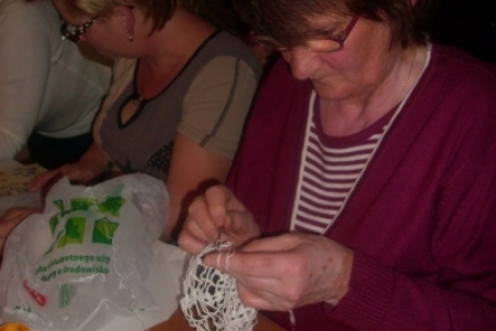 Podczas II warsztatów szydełkowania w ramach realizowanego projektu „Z tradycją rękodzieła w przyszłość” uczestnicy znając już podstawy tej techniki zaczęli tworzyć szydełkowe kwiatki.