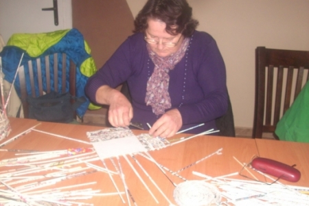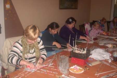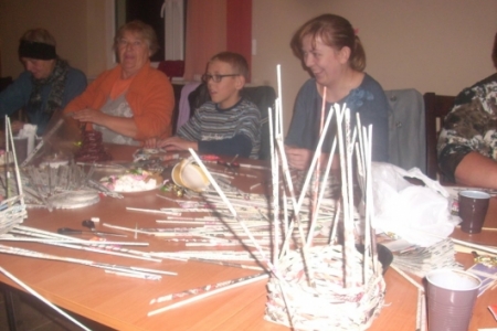 Popularność papierowej wikliny nie słabnie, stąd też kolejne warsztaty. Tym razem uczestnicy warsztatów przekonali się jaką miłą umiejętnością jest wyplatanie koszyków. Krok po kroku powstawały koszyki, które trwałością nie ustępują klasycznej wiklinowej plecionce. Zachęcając uczestników jeszcze bardziej do rozpoczęcia wspaniałej przygody z papierową wikliną dodatkowo zaprezentowano jak zrobić świąteczną choinkę.