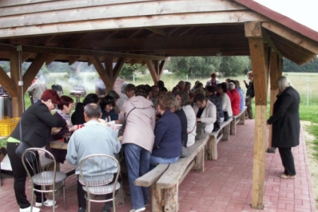 Przywitaliśmy naszych mazurskich gości jak przystało na gospodarza suto zastawionym stołem na którym znalazły się potrawy przygotowane przez mieszkańców wsi.Tematyka rozmów głównie dotyczyła działań jakie podejmuje nasze sołectwo.Z wielkim żalem rozstawaliśmy się z naszymi gośćmi .