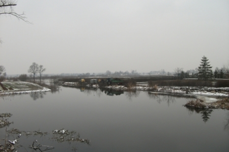 Mimo niesprzyjających warunków atmosferycznych kontynuowane są prace w ramach akcji "Bezpieczna droga". Ziemię zebrana z pobocza drogi powiatowej wykorzystano do wału przy "starej" Orlej, który okazał sie za niski podczas ostatnich wylewów.