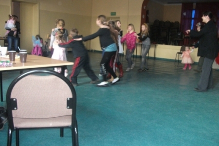 Na kinderbal przyszły też osoby starsze (mamy, babcie), które także poczęstowano kawą i ciastem . Ogólnie była radość i zadowolenie a o to organizatorkom właśnie chodziło :) W zabawie uczestniczyło około 40 dzieciaczków , wszystkie dzieci wyszły zadowolone i już pytały o następną zabawę.