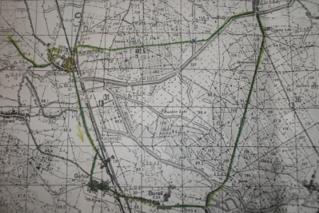 Na mapach zaznaczono mały obręb szlaku „Zielony III”, natomiast duży obręb, to szlak brązowy – rozpoznany do przetarcia.