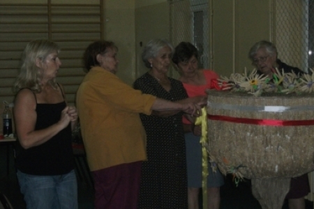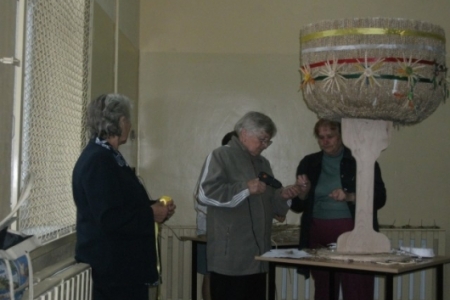 Na tę okoliczność członkinie zespołu „Dyszel” oraz panie z Klubu Seniora tworzyły wieniec, który wziął udział w gminnym konkursie na najładniejszy wieniec dożynkowy.