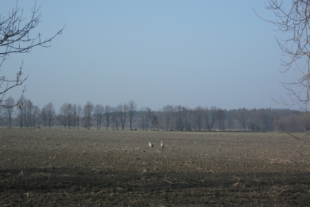 Pierwsze bociany przyleciały do nas 12 marca. Wcześniej obserwowaliśmy ciągnące klucze dzikich gęsi, zwiastunek nadchodzącego ocieplenia. Na bezchmurnym niebie widać przeloty łabędzi. W pobliżu zbiorników wodnych słychać odgłosy dzikich kaczek. Jak zwykle na polach po kukurydzy żerują żurawie.