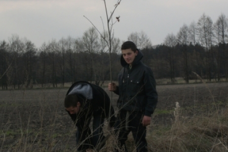 Członkowie grupy o.c. posadzili nowe drzewka wzdłuż drogi powiatowej 1111, w miejsce topoli zniszczonych przed kilku laty przez wichurę.