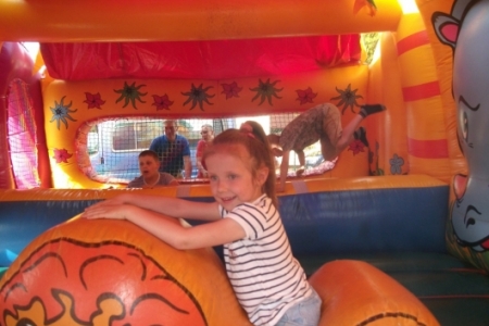 Dorośli spędzają czas na kameralnych spotkaniach, dzieci cieszą się dmuchanym zamkiem, a młodzież przygotowuje wieczorek z muzyką.