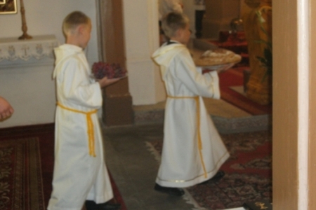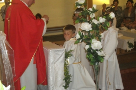 W kulminacyjnym momencie Eucharystii dzieci przyniosły do ołtarza chleb eucharystyczny, wino i wodę, potem przyjęły po raz pierwszy Pana Jezusa do swoich serc i tym samym formalnie zostały członkami katolickiej wspólnoty. Z okazji pierwszej Komunii św. dzieci otrzymały pamiątki religijne.