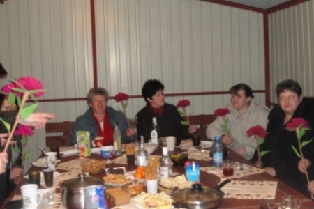 8 marca o godz.17.00 zebrały się wszystkie chętne Panie, aby uczcić swoje Święto. Każda z Pań przygotowała coś"pysznego". We wspólnym towarzystwie szybko mijał czas. Największą atrakcją wieczoru był przybyły na miejsce świętowania sołtys P. Henryk Górkowy, który wręczył każdej z Pań piękną różę, wykonaną z bibuły.