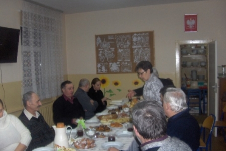 Po zakończeniu części merytorycznej uczestnicy świętowali tradycyjnego "Śledzika". Na stole pojawiły się specjalne przygotowane potrawy - nasze panie pokazały, że tradycja nadal obowiązuje, a zaplecze kuchenne przy świetlicy warto było doposażyć.