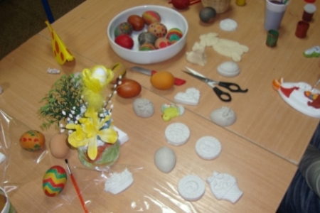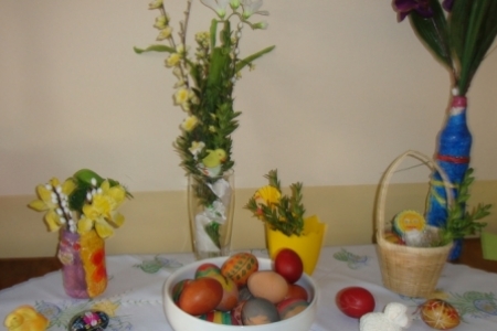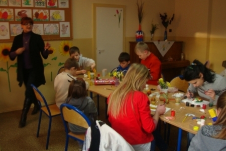 Pod okiem Pani Krysi młodzież z zapałem tworzy kolorowe pisanki, zajączki, baranki i inne elementy do dekoracji wielkanocnych stołów i mieszkań.