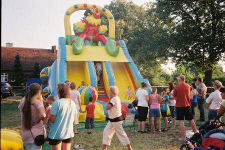 Na uczestników zabawy czekało wiele atrakcji: dmuchana zjeżdżalnia, góra wspinaczkowa, kącik dla malucha, tatuaże z henny, malowanie twarzy, modelowanie balonów oraz zabawy chustą animacyjną i pokaz zumby pod okiem instruktorki p. Edyty Grzybkowskiej. Serwowano też dania z grilla.