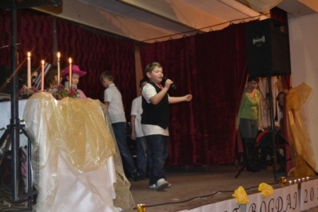 Po posiłku przyszła kolej na występy. Jako pierwsi zaprezentowali się na scenie uczniowie Szkoły Podstawowej w Bogdaju, którzy przedstawili krótki program artystyczny, przygotowany specjalnie na tę okazję. Największy aplauz publiczności, piosenką „Baby, ach te baby”, zdobył Konrad Pachura. Muzycznymi talentami popisało się również troje innych chłopców: Marcel Kruszyk, Miłosz Pilarski i Mateusz Mus, którzy ułożyli autorską piosenkę o kobietach - pełną humoru i dowcipu. Natomiast gwiazdą wieczoru była pani Janina Smoliga-Rysz, która pochodzi z Bogdaju i obecnie tu mieszka. Ma na swoim koncie występy na festiwalu w Kołobrzegu – mimo tych sukcesów jest bardzo skromną i prostolinijną kobietą. Swoim anielskim, a zarazem mocnym głosem poruszyła wszystkie serca. Zaśpiewała 5 utworów m. in. „Mamo” Wioletty Willas i „Do kołyski” zespołu Dżem. Sposób, w jaki wykonała te wzruszające piosenki świadczą o tym, że pani Janina ma nie tylko piękny głos, ale i piękne wnętrze, które świadczy o jej prawdziwej kobiecości i dobroci.