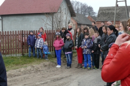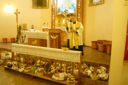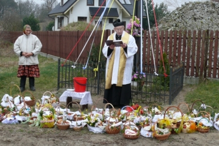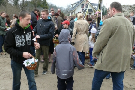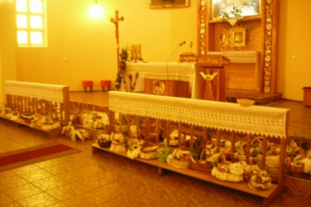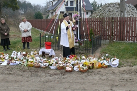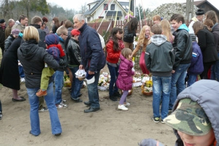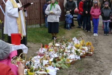 W Łazach Małych w kościele o godz. 10.00, natomiast w Łazach Wielkich o godz. 10.30 przy krzyżu, tłumnie zgromadzili się mieszkańcy wraz z pięknymi, kolorowymi i zapełnionymi po brzegi koszyczkami z których radośnie zaglądały kolorowe pisanki, baranki, zajączki…