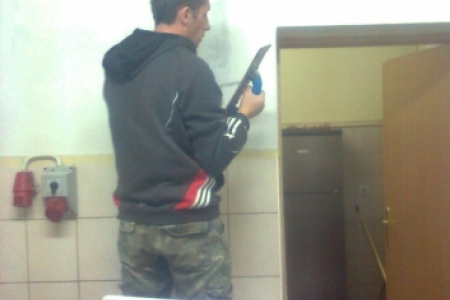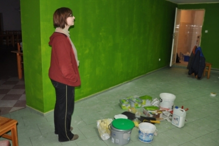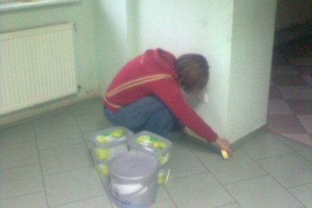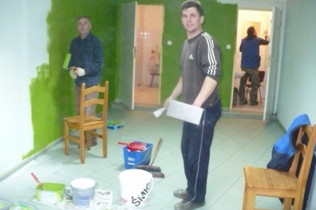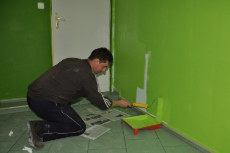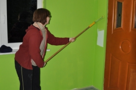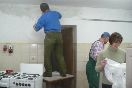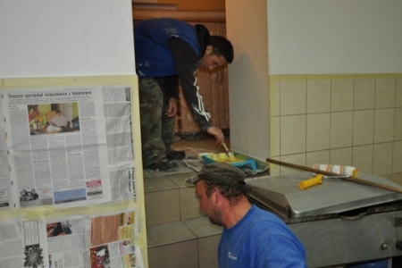 Na przełomie marca i kwietnia mieszkańcy– ochotnicy przystąpili do odnawiania części pomieszczeń świetlicy wiejskiej. Przeciekający w ubiegłym roku dach spowodował wiele szkód, dlatego też konieczne było zdrapywanie, szlifowanie i malowanie ścian oraz sufitów w kuchni, korytarzu a także w toaletach. Prace przyniosły zamierzone efekty– ładnie i estetycznie wyglądające pomieszczenia w przyjaznych kolorach prezentują się teraz wspaniale.
