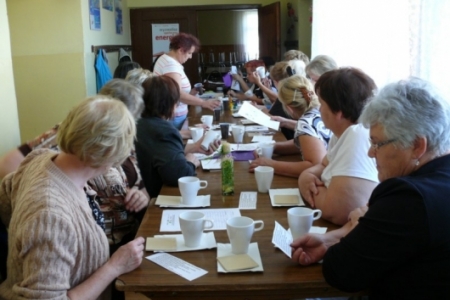 W piątek miałyśmy swoje warsztaty, a w poniedziałek pojechałyśmy z delegacją na zajęcia w Bukowicach. Sołtys Izabela Chaszczewicz przekazała Sołtys Bukowic II pani Bogumile Bialic wykonaną przez siebie butelkę z ziołami, a następnie przystąpiłyśmy do malowania kubków i kafelków specjalnymi farbami do ceramiki. Przeważały na rysunkach motywy lawendy, która pojawiła się na warsztatach z ziół, a także maki, chabry oraz motyle. Panie wykazały się niezwykłym talentem oraz umiejętnościami. Było to kolejne miłe i udane spotkanie w babskim gronie.