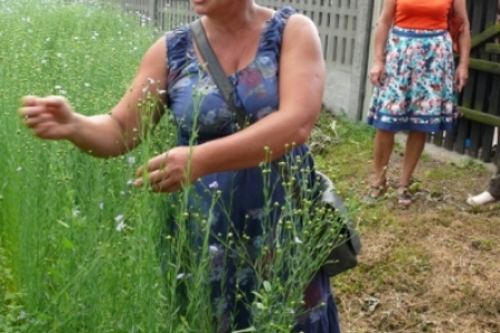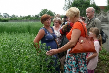 W wyjeździe brały udział 33 osoby – głównie panie, ale nie zabrakło również i panów. Pani Agnieszka prezentowała hodowane przez siebie odmiany roślin, opowiedziała o ich przeznaczeniu, a także o swojej ciężkiej pracy. Ponieważ swoje rośliny hoduje w dwóch różnych miejscach, mieliśmy okazję przespacerować się po Odolanowie i zobaczyć jakie to miłe i zadbane miejsce. Po dotarciu na właściwą działkę, uczestnicywycieczki zostali poczęstowani herbatką z mięty, która przy panującym upale była bardzo pożądana i wyśmienicie smakowała. Uczestnicy mieli również możliwość obejrzenia, a także zakupienia „efektów końcowych” pracy pani Agnieszki. Wielkim powodzeniem cieszyły się „warkocze kuchenne” z czosnku, które posiadają wspomniany wcześniej certyfikat.