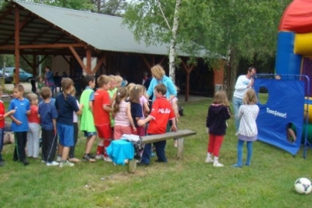 Atrakcją dla dzieci były zawody sportowe, które prowadzili pracownicy GOSiRu w Twardogórze, dmuchany zamek oraz basen z kolorowymi kulkami. Miło było patrzeć na uśmiechnięte dziecięce buzie! W przerwie między zawodami, a zabawą dzieci zajadały pieczone kiełbaski oraz pyszne lody i ciasto upieczone przez rodziców. Były też tańce, a chłopcy zorganizowali mecz w piłkę nożną. Zabawa trwała do godz. 14.00. Dzieci z żalem ale w dobrym humorze opuszczały Bukowinkę. Obiecały, że wrócą za rok!!!