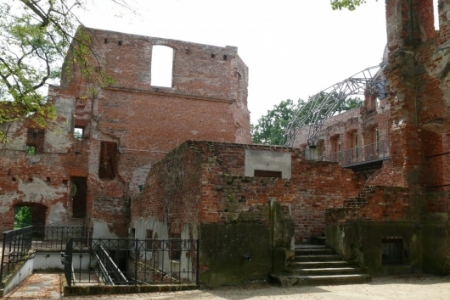 Nasza wycieczka zakończyła się w Żmigrodzie, gdzie obejrzeliśmy ruiny pałacu Hatzfeldtów, wieżę mieszkalno-obronną (basztę) i zabytkowy park z pomnikami przyrody. Tutaj czekała na nas nasza mieszkanka Pani Agnieszka Prucnal, która obecnie pracuje w Stowarzyszeniu Gmin Turystycznych Wzgórz Trzebnickich i Doliny Baryczy, które ma siedzibę w baszcie.