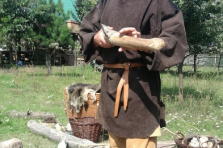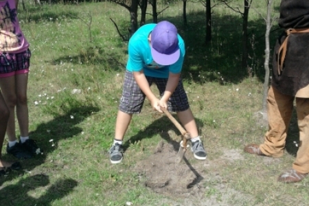 W środę 29 sierpnia byliśmy w Lędzinie u pani Beaty Piekalskiej, gdzie specjalnie dla nas przyjechał z Wrocławia pan Marcin-archeolog. Pokazywał i opowiadał jak kiedyś robiono mąkę, polowano na zwierzęta.Mogliśmy spróbować swoich sił w strzelaniu z łuku i rzucaniu dzidą. Oglądaliśmy różne poroża i rogi oraz bardzo prymitywne narzędzia np. siekierę, której grot był zrobiony z krzemienia lub poroża oraz motykę, której górna część także była zrobiona z poroża. Pan Marcin pozwolił nam użyć tych narzędzi. Warto dodać, że słuchając tych opowieści siedzieliśmy w kręgu na skórach zwierzęcych, które były bardzo wygodne.