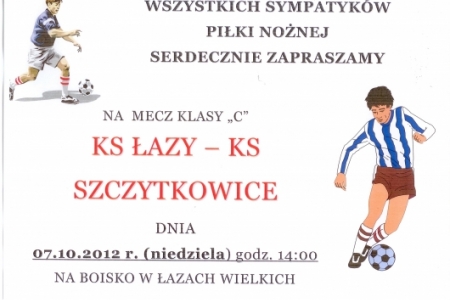 A już w niedzielę 7 października o 12.00 odprawiona zostanie msza odpustowa w naszym kościele pod wezwaniem Matki Boskiej Różańcowej w Łazach Małych, a o 14.00 coś dla sympatyków piłki nożnej - kolejny mecz klasy "C". Tym razem Łazy zmierzą się ze Szczytkowicami.