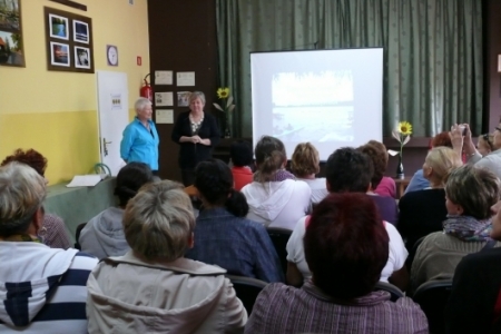 O 17.00 spotkaliśmy się z Barbarą Tyszką – dyrektor biura Lokalnej Grupy Działania „Brama Mazurskiej Krainy” oraz Krzysztofem Margolem – prezesem LGD „Brama Mazurskiej Krainy”. Na pierwszym szkoleniu dowiedzieliśmy się między innymi: że wieś promuje się najlepiej przez jeden temat przewodni oraz dobrze jest mieć takie osoby, które mają pomysły i potrafią wciągnąć mieszkańców do współpracy – tzw. „lokomotywy”. To jest podstawą sukcesu w lokalnych działaniach.