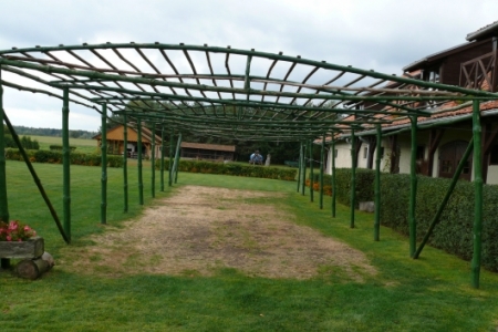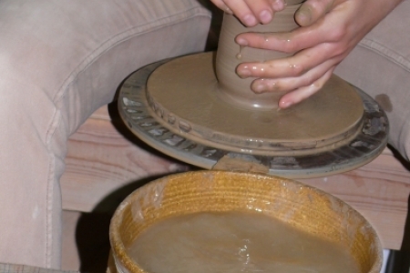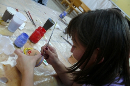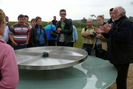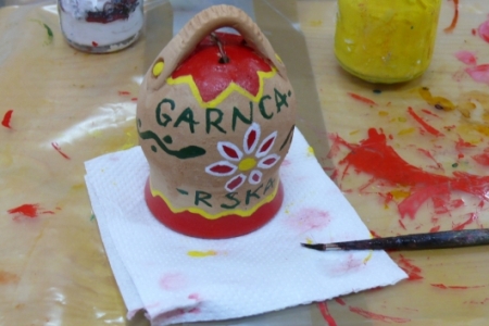 Uwieńczeniem tego dnia był pobyt w Kamionce „Garncarskiej wiosce”- przedsiębiorstwie społecznym. Duże zainteresowanie wzbudził „Ogród rajski”, chociaż obecnie jest w realizacji , to już robi ogromne wrażenie. Ogród zakładany jest na planie drzewa, którego „konary” będą w ogrodzie alejami łączącymi ogródki tematyczne, m.in.:skalny, rajski, edukacyjny, wrzosowy, muzyczny, ziołowy, różany oraz zakątek bajkowy ze stołem, na którym dzieci będą mogły „wyczarować” sobie zabawki z szyszek, żołędzi i kasztanów. Jest ogród tajemnic z labiryntem, rośliny są jeszcze małe, więc łatwo udało się nam go przejść. Przyszła pora na obiad, po spacerze w ogrodzie wszystkim dopisywał apetyt, jedzenie było przepyszne. Po chwili ruszyliśmy zwiedzać dalszą część „Wioski garncarskiej”- mieliśmy pokaz toczenia na kole garncarskim. Sami mieliśmy okazję ozdobić wyrób z gliny, dostaliśmy dzwoneczki do malowania. Każdy starał się ozdobić swój dzwonek jak najładniej, ale nie było to takie proste. Mogliśmy również zakupić pamiątki w sklepie funkcjonującym na terenie przedsiębiorstwa. Były tam wyroby z „Garncarskiej wioski” jak i okolicznych rękodzielników. Ponownie spotkaliśmy się z panem Krzysztofem Margolem, który przedstawił nam marketing wioski tematycznej. Pożegnano nas kolacją i wieczorem mazurskim przy akordeonie i miodzie pitnym.