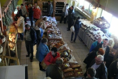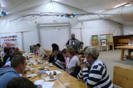 Następnym przystankiem w dniu powrotu był zajazd Tusinek w Rozogach. Poznaliśmy kurpiowskie tradycje kulinarne. Obejrzeliśmy gospodarstwo, w którym znajdują się konie, krowy, kozy. W trakcie budowy jest pomieszczenie dla krów oraz wytwórnia serów. Większość produktów w zajeździe pochodzi z własnego gospodarstwa. Kosztowaliśmy sery kozie, podpłomyki oraz inne potrawy regionalne. Kameralną i domową atmosferę tworzy wystrój zajazdu. Zjedliśmy tu przepyszny kurpiowski obiad i ruszyliśmy w dalszą drogę. Do Milicza dotarliśmy o 23.00 a w domu byliśmy trochę później.