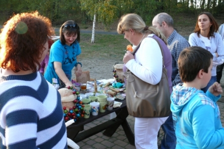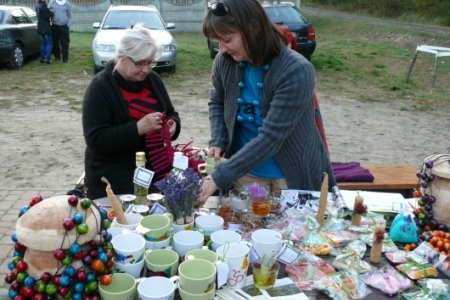 Nasze stoisko cieszyło się popularnością – zwłaszcza kolorowe drewniane korale, i znów udało się nam choć odrobinę podreperować wioskowy budżetJ