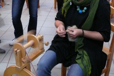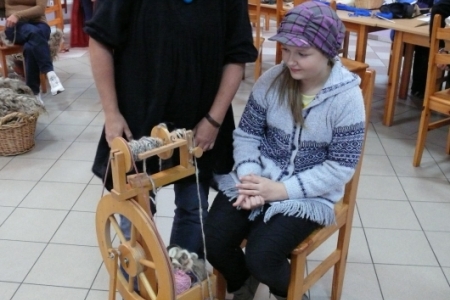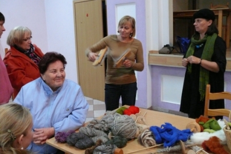 Wracamy do czasów naszych babć i prababć. Kto w dzisiejszych czasach słyszał o przędzeniu wełny? Kołowrotek? – dawno zniknęły z naszych domów, niektóre z nas wcale ich nie widziały. Wrzeciono? Ta sama historia, no chyba że uwzględnimy bajkę o śpiącej królewnie… A jednak są jeszcze osoby i to w naszej miejscowości, które prząść wełnę potrafią. A młodsze pokolenie, które jeszcze te przyrządy pamięta i to jeszcze młodsze, które nie pamięta i nie zna, mogło spróbować własnych sił w tym rzemiośle – początki były trudne, ale miejmy nadzieję, że z czasem będzie lepiej.