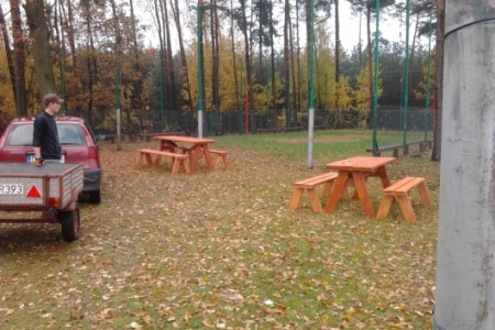 Bardzo dużo czasu zajęły uzgodnienia pomiędzy Gminą Krośnice a firmą Volvo, ostatecznie zdecydowano, że koordynatorem wszelkich prac będzie pan Andrzej Prucnal – mieszkaniec Łaz a jednocześnie pracownik Volvo. Po uzgodnieniach, zgłosiliśmy prace do Starostwa Powiatowego w Miliczu. Obecnie posiadamy już zgodę na montaż elementów, niestety pogoda nam nie sprzyja – najpierw opady śniegu, teraz deszczu, więc montaż nastąpi najprawdopodobniej dopiero na wiosnę. Zamontowane zostanie 6 kompletów - stół z 2 ławkami, kosze na śmieci, grill okrągły, stojak na rowery. Zasadzimy również drzewa – jarzębiny i kaliny. Wykonawcą elementów drewnianych jest mieszkaniec Łaz Małych pan Jan Kuzaj. Metalowy stojak na rowery wykona Hubert Kulej.
