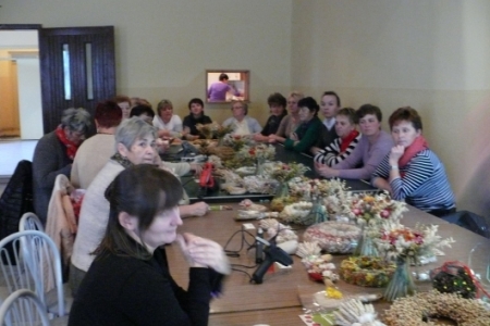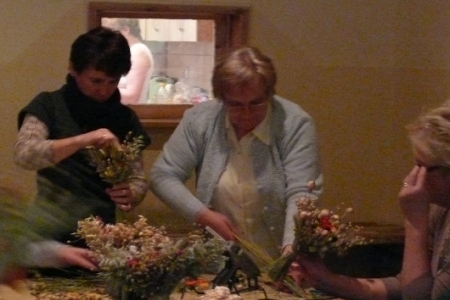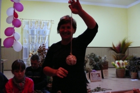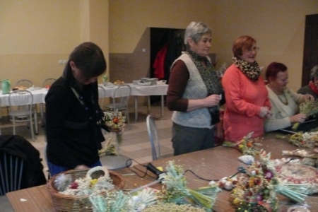 Warsztaty odbyły się tym razem w Pakosławsku, a prowadzone były przez znaną już u nas Panią Agnieszkę Lesiak, która zajmuje się hodowlą suszu roślinnego. Pani Agnieszka pokazała nam jak zrobić bukiet z suszu oraz ciekawą zawieszkę do kuchni. Następnie zaprezentowała nam jak wykonać proste i atrakcyjne dekoracje bożonarodzeniowe: wianuszek, kulę z szyszek, dekorację okienną z wstążki i plastrów pomarańczy.