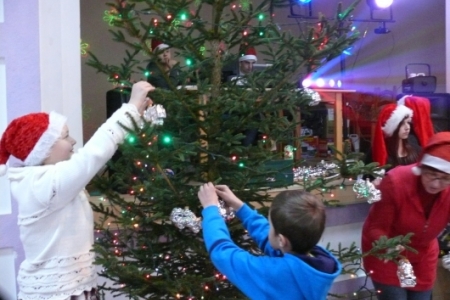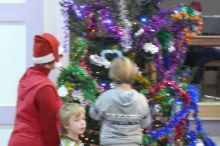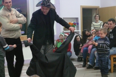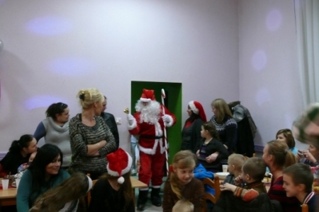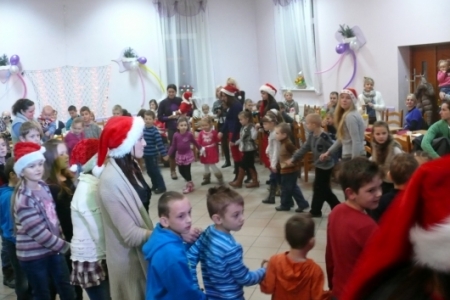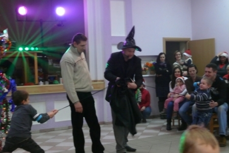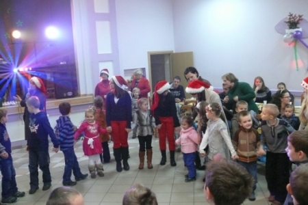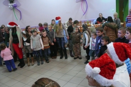 Jak co roku dla dzieci przygotowano słodki poczęstunek: ciasta upieczone przez mieszkanki Łaz, ciastka, galaretki, jabłka, popcorn, soki oraz herbatę. Aby umilić czas oczekiwania na przybycie Św. Mikołaja dzieci miały możliwość przystrojenia choinki, a następnie zabawy przy muzyce. Atrakcją tego dnia był występ iluzjonisty - niektóre dzieci miały okazję mu asystować. Oczywiście najbardziej oczekiwanym gościem tego wieczoru był Mikołaj. Pani Sołtys poprosiła magika, żeby pomógł dzieciom wyczarować Św. Mikołaja. Dziewięćdziesiąt dzieci przywołało Mikołaja: ”sim sala bim przybądź Mikołaju”… i Mikołaj zjawił się wraz ze swoją świtą: aniołami i diabełkami. Mikołaj rozmawiał z każdym dzieckiem, niektóre mówiły wierszyk lub śpiewały piosenkę i każde otrzymało prezent. Gdy już wszystkie paczki zostały rozdane, dzieci podziękowały Mikołajowi i pożegnały się z nim, a Mikołaj obiecał że za rok znowu wróci do Łaz. Gdy już paczki zostały rozpakowane, dzieci wróciły do zabawy przy muzyce, która trwała do godz. 20tej.
