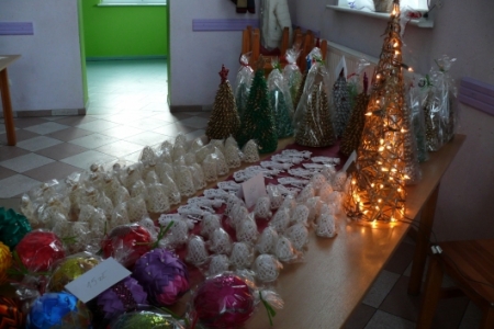 W niedzielę 9 grudnia w godz. 13.00 – 16.00 odbył się w świetlicy wiejskiej w Łazach Małych kiermasz bożonarodzeniowy. Większość sprzedawanych wyrobów była własnoręcznie wykonana przez mieszkanki Łaz, które chętnie wykorzystują wiedzę zdobytą podczas realizowanych projektów „Ale Ziółko” oraz „Akademia tradycji i rękodzieła – przez sztukę do wiedzy”. Na kiermaszu można było kupić własnoręcznie wykonane kartki z życzeniami, wianki na drzwi, stroiki świąteczne, bombki zdobione cekinami i wstążkami, choinki z szyszek i makaronu, wydziergane na szydełku serwetki, aniołki, bombki, dzwoneczki, wykonane z masy solnej anioły oraz anioły z drewna oraz pachnące pierniczki na choinkę. Największym powodzeniem cieszyły się jak zwykle, wykonane przez panią Agnieszkę Prucnal, mieszkankę Łaz Wielkich, aniołki z masy solnej.