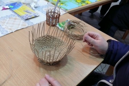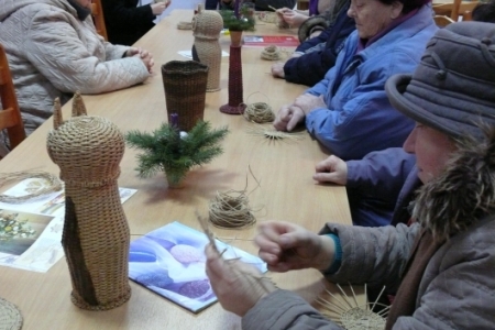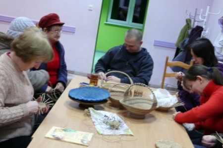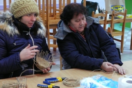 W piątki 11 stycznia, 8 i 15 lutego odbyły się w świetlicy w Łazach warsztaty w ramach projektu „Akademia tradycji i rękodzieła –przez sztukę do wiedzy” z Programu Operacyjnego Kapitał Ludzki, który jest współfinansowany ze środków UE w ramach Europejskiego Funduszu Społecznego. Uczestniczki projektu przystąpiły do dalszej nauki wyplatania naczyń z loomu. Tym razem w związku ze zbliżającymi się już Świętami Wielkanocnymi prowadzący zajęcia uczył wyplatać koszyczki. Zajęcia odbywają się 2 razy w miesiącu do końca kwietnia. Do świąt tematyką warsztatów będą dekoracje wielkanocne.