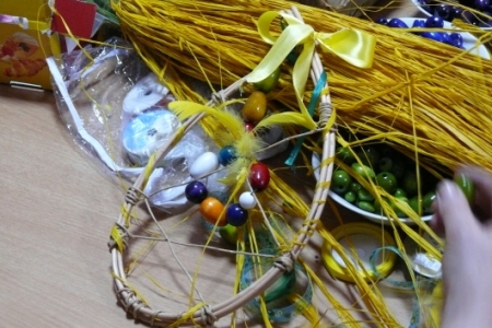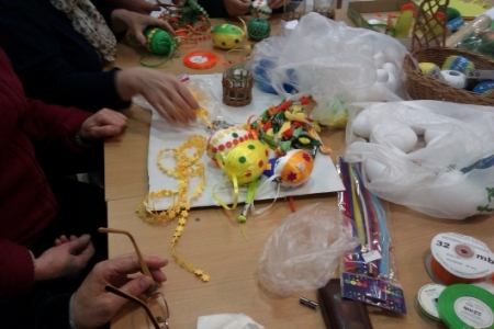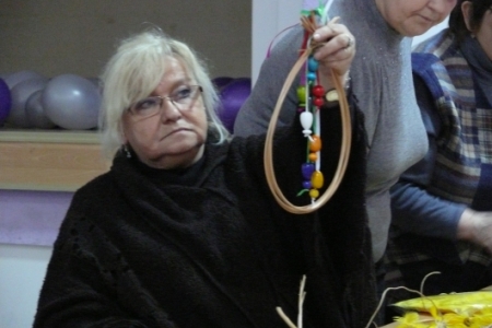 8 marca powrócono do wyrobów z loomu i powstawały bardzo oryginalne koszyczki wielkanocne. Panie również bardzo chętnie „chwyciły” za wiklinę i stworzyły bardzo ciekawe ozdoby: połączenie wikliny i kolorowych koralików w kształcie jajeczek dało niezwykle atrakcyjne i ozdobne zawieszki!