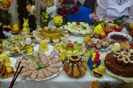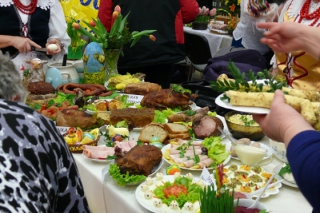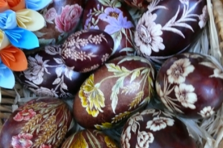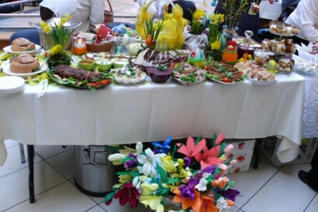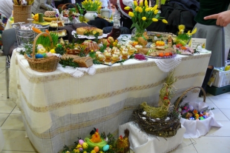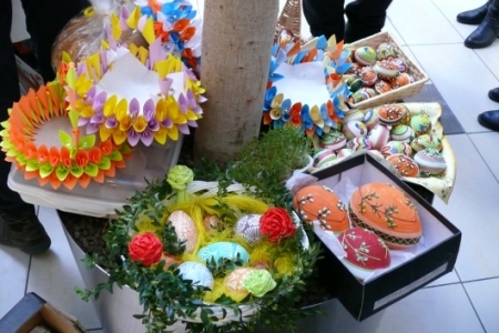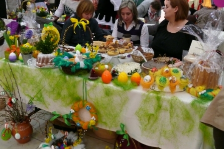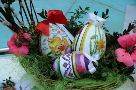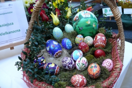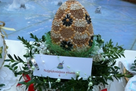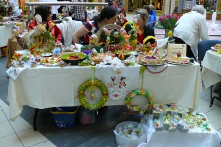Była to okazja podglądnięcia jak taka impreza wygląda i co inne panie mają w ofercie wielkanocnej. A było co oglądać: królowały pisanki wykonane różnymi technikami, dekoracje stołów i potraw wielkanocnych zapierały dech w piersiach, przepiękne palmy, wianki i stroiki, baranki, kurki, koguciki, a wszystko piękne kolorowe jak wiosna, która niestety nie zamierza w tym roku tak szybko do nas zawitać.
