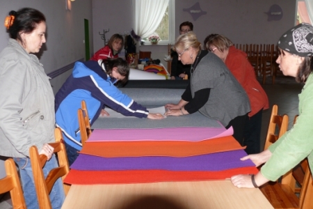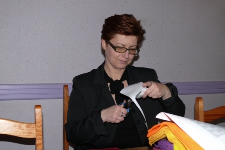 Kolejny raz fantastyczna wyobraźnia, poczucie estetyki i artystyczny zmysł uczestniczek warsztatów pozwoliły na powstawanie kolejnych „dzieł” . W ruch poszły nożyczki, szablony-udoskonalane i poprawiane przez Panie – kleje, kolorowe nici.