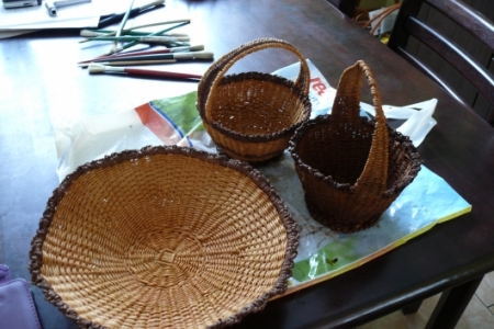 Prowadzący warsztaty z loomu Pan Andrzej Kret chyba nie spodziewał się, że wyroby „uczennic” przerosną wyroby Mistrza!