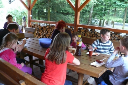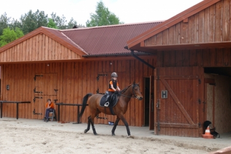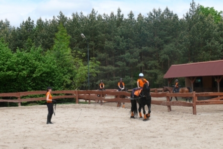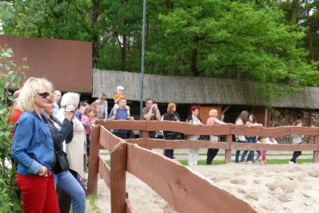 Po części oficjalnej przenieśliśmy się nad staw Państwa Stryjskich, gdzie goście mogli spróbować wyśmienitej grochówki, wybornych wędlin oraz obejrzeć i zakupić wyroby rękodzielnicze z naszego stoiska. Dla dzieci przygotowano wiele interesujących zabaw – było przeciąganie liny, skoki w workach i wiele innych. Na zakończenie wszystkie dzieciaki otrzymały słodki poczęstunek od właścicieli stajni.