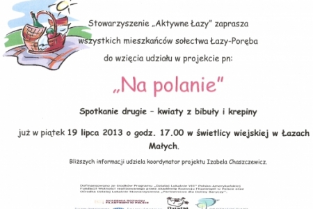 już w piątek 19 lipca 2013 o godz. 17.00 w świetlicy wiejskiej w Łazach Małych.