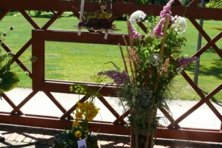 Nasza łazowska ekipa przygotowała trzy eksponaty stworzone wyłącznie z roślin z naszych ogrodów. Mimo że jesteśmy nowicjuszkami w robieniu kompozycji, w oczach jurorów nasze dzieła zyskały uznanie i uplasowano je na trzecim miejscu.
