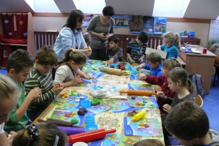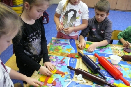 10 grudnia – to dopiero było wyzwanie - 2 przedstawicielki stowarzyszenia Izabela Chaszczewicz i Maria Gradzik poprowadziły warsztaty z masy solnej dla kl. 2b z Zespołu Szkół w Bukowicach.