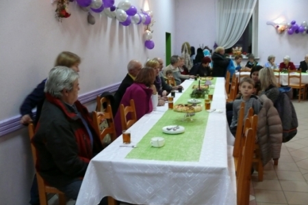 Na stołach czekały na nich przepyszne ciasta upieczone przez mieszkanki Łazów, natychmiast pojawiła się kawa i herbata, ze sceny płynęły piosenki z lat 70 serwowane przez niezawodną Igę, a przed sceną czekała grupa dzieci i młodzieży „Łazanki” z programem dla kochanych gości.