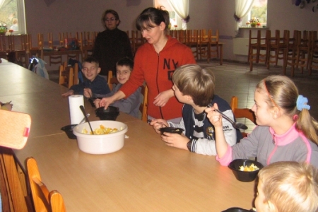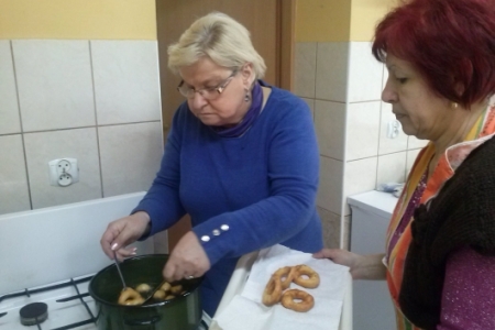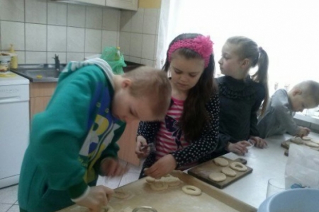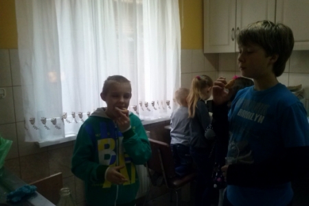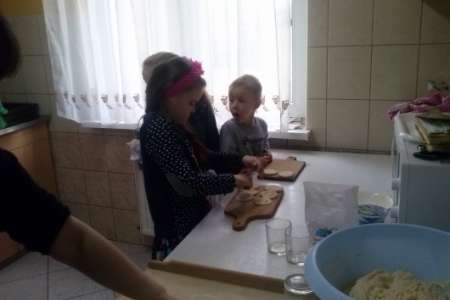 …. I tak minęły prawie dwa tygodnie przy grach i zabawach, bo ostatniego dnia w „Tłusty czwartek” dzieci robiły oponki pod wodzą pani Ewy Kowal i później zajadały się nimi – zakończenie ferii było bardzo smakowite i słodkie!