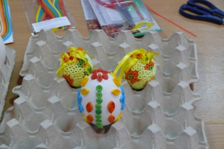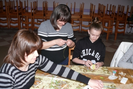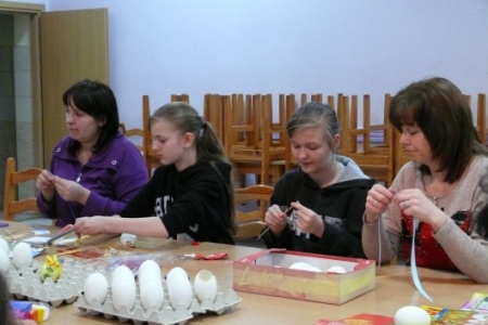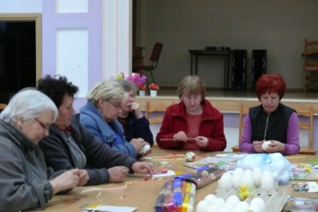 W piątek 21 i 28 marca grupa aktywnych mieszkanek Łaz przy wsparciu Stowarzyszenia „Aktywne Łazy” spotkała się w świetlicy wiejskiej na warsztatach wielkanocnych. Podczas spotkania panie poznawały nową technikę zdobienia pisanek – quilling. Ta metoda zwijania wąskich paseczków papieru jest bardzo żmudna, ale efekt końcowy jest imponujący, co też bardzo spodobało się uczestniczkom. Drugą metodą którą panie wykorzystały do dekoracji pisanek był decoupage.